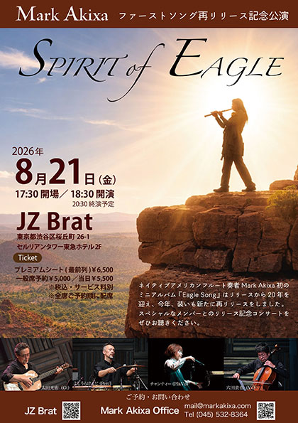 ネイティブアメリカンフルート奏者Mark Akixa初のミニアルバム『Eagle Song』はリリースから20年を迎え、今年装いも新たに再リリースをしました。